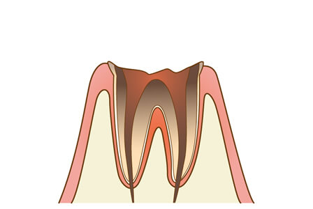 エナメル質の内側にある象牙質にまで虫歯の汚染が進んだ状態。しみる、痛むなどの症状が現れることが多いです。